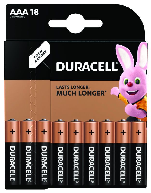 18 броя Duracell Basic LR03 AAA алкални батерии